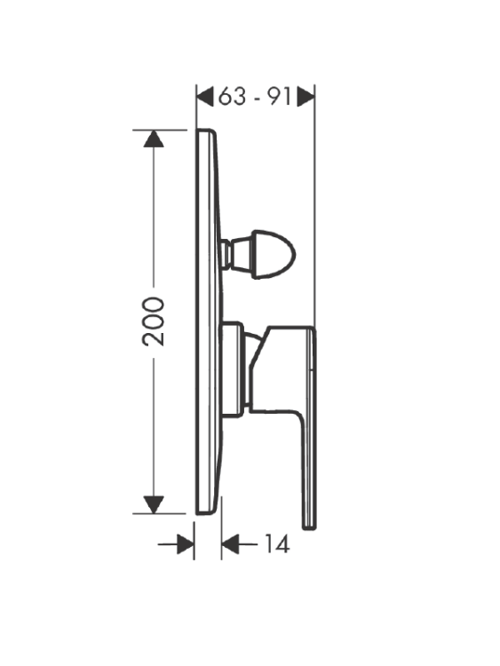 Смеситель для душа, Hansgrohe, Vernis Shape, тип открывания воды-рычажный, тип регулирования воды-керамический картридж, тип усатновки-встраиваемый, отверстия для монтажа-2, материал ручки-металл, цвет ручки-в цвет смесителя, внутренняя часть-необходимо заказать, цвет-черный матовый Смеситель для душа, Hansgrohe, Vernis Shape, цвет-черный матовый