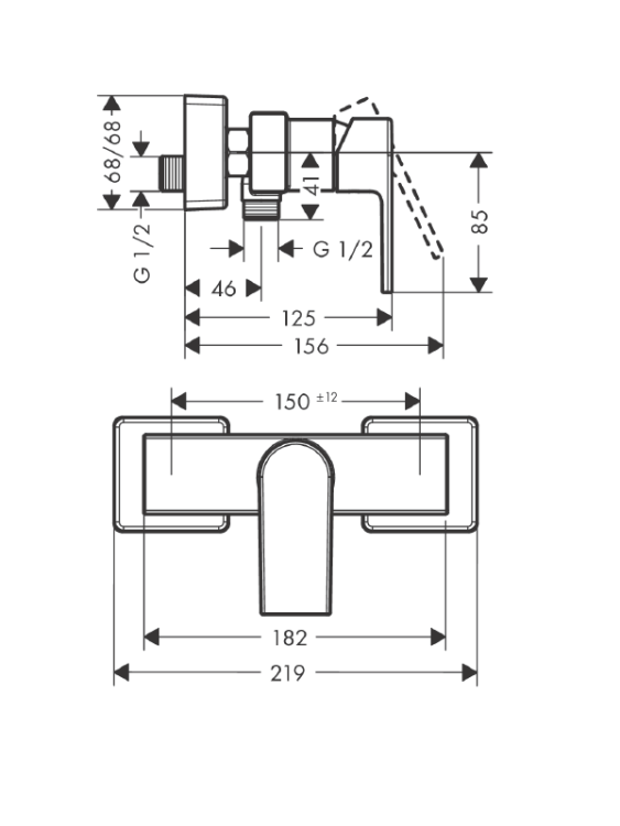 Смеситель для душа, Hansgrohe, Vernis Shape, тип открывания воды-рычажный, тип регулирования воды-керамический картридж, тип установки-настенный, отверстия для монтажа-2, материал ручки-металл, цвет ручки-в цвет смесителя, цвет-черный матовый Смеситель для душа, Hansgrohe, Vernis Shape, цвет-черный матовый