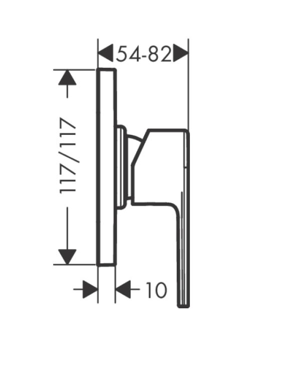 Смеситель для душа, Hansgrohe, Vernis Shape, тип открывания воды-рычажный, тип регулирования воды-керамический картридж, тип установки-встраиваемый, отверстия для монтажа-1, материал ручки-металл, цвет ручки-в цвет смесителя, внутренняя часть-необходимо заказать, цвет-черный матовый Смеситель для душа, Hansgrohe, Vernis Shape, цвет-черный матовый