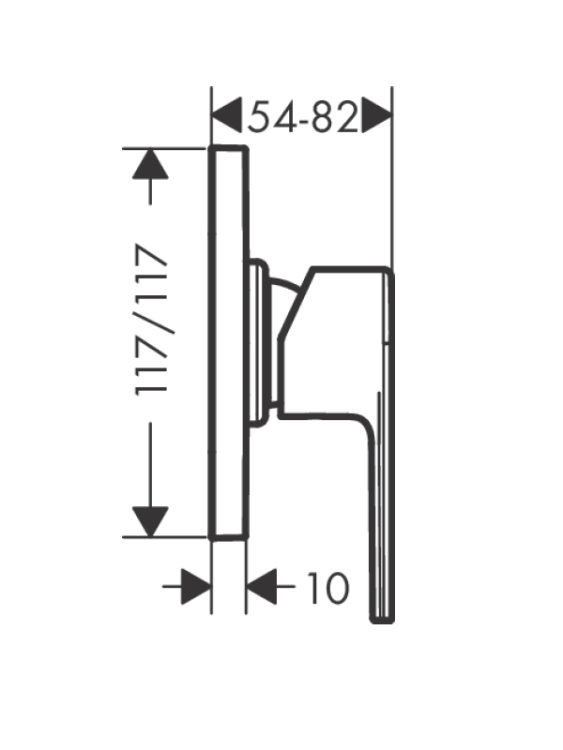 Смеситель для душа, Hansgrohe, Vernis Shape, тип открывания воды-рычажный, тип регулирования воды-керамический картридж, тип установки-встраиваемый, отверстия для монтажа-1, материал ручки-металл, цвет ручки-в цвет смесителя, внутренняя часть-необходимо заказать, цвет-хром Смеситель для душа, Hansgrohe, Vernis Shape, цвет-хром