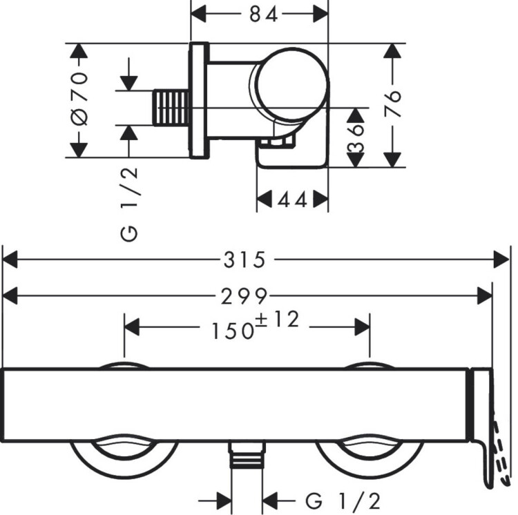 Смеситель для душа, Hansgrohe, Vivenis, тип открывания воды-однорычажный, тип регулирования воды-керамический картридж, монтаж-настенный, отверстия для монтажа-2, цвет-хром Смеситель для душа, Hansgrohe, Vivenis, цвет-хром