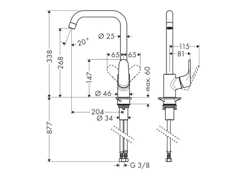 Смеситель для кухни, Hansgrohe, Focus M41, тип открывания воды-однорычажный, тип регулирования воды-керамический картридж, отверстия для монтажа-1, высота, мм-338, вынос излива, мм-204, тип излива-поворотный 110°, 150° или 360°, тип подводки-гибкая, стандарт подвода воды-3/8", цвет-черный матовый, с возможностью размещения рукоятки справа или слева Смеситель для кухни, Hansgrohe, Focus M41, цвет-черный матовый