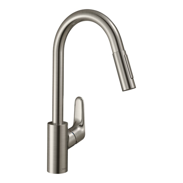 Смеситель для кухни, Hansgrohe, Focus M41, Eco, тип открывания воды-однорычажный, тип регулирования воды-керамический картридж, монтаж-на раковину/столешницу, отверстия для монтажа-1, высота, мм-406, вынос излива, мм-220, тип излива-выдвижной, поворотный, 2 режима стури-ламинарная струя, душевая струя, магнитная система крепления душа MagFit, тип подводки-гибкая, стандарт подвода воды-3/8", цвет-сталь Смеситель для кухни, Hansgrohe, Focus M41, Eco, цвет-сталь