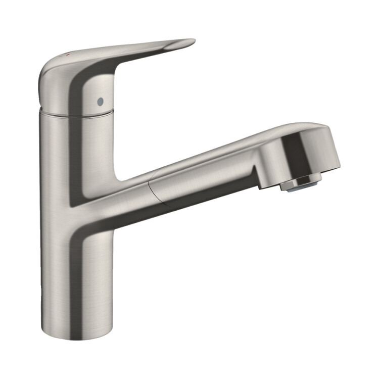 Смеситель для кухни, Hansgrohe, Focus M42, тип открывания воды-однорычажный, тип регулирования воды-керамический картридж, монтаж-на раковину/столешницу, отверстия для монтажа-1, высота, мм-222, вынос излива, мм-206, тип излива-выдвижной, поворотный 120°, магнитная система крепления душа MagFit, душевой шланг Quick-Connect, тип подводки-гибкая, стандарт подвода воды-3/8", цвет-сталь Смеситель для кухни, Hansgrohe, Focus M42, цвет-сталь