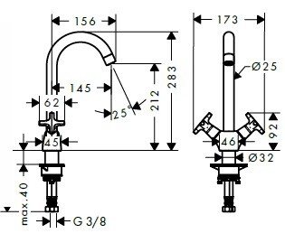 Смеситель для кухни, Hansgrohe, Logis M32, тип открывания воды-двухвентильный, тип регулирования воды-керамическая кран-букса, монтаж-на раковину/столешницу, отверстия для монтажа-1, высота, мм-283, вынос излива, мм-145, тип излива-поворотный, тип подводки-гибкая, стандарт подвода воды-3/8", цвет-хром Смеситель для кухни, Hansgrohe, Logis M32, цвет-хром
