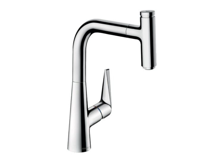 Смеситель для кухни, Hansgrohe, Talis Select M51, sBox, тип открывания воды-однорычажный, тип регулирования воды-керамический картридж, монтаж-на раковину/столешницу, отверстия для монтажа-1, высота, мм-335, вынос излива, мм-208, тип излива-выдвижной, поворотный на 110° или 150°, 1 режим струи, кнопка Select для комфортного включения/выключения воды, магнитная система крепления душа MagFit, тип подводки-гибкая, стандарт подвода воды-3/8", цвет-хром Смеситель для кухни, Hansgrohe, Talis Select M51, sBox, цвет-хром