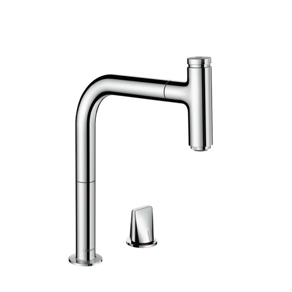 Смеситель для кухни, Hansgrohe, Metris Select M71, sBox, тип открывания воды-однорычажный, тип регулирования воды-керамический картридж, монтаж-на раковину/столешницу, отверстия для монтажа-2, высота, мм-320, вынос излива, мм-221, тип излива-выдвижной, поворотный 110° или 150°, 1 режим струи, корпус для шланга, кнопка Select для комфортного включения/выключения воды, магнитная система крепления душа MagFit, тип подводки-гибкая, стандарт подвода воды-3/8", цвет-хром Смеситель для кухни, Hansgrohe, Metris Select M71, sBox, цвет-хром