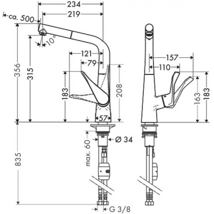 Смеситель для кухни, Hansgrohe, Metris M71, Eco, тип открывания воды-однорычажный, тип регулирования воды-керамический картридж, монтаж-на раковину/столешницу, отверстия для монтажа-1, высота, мм-356, вынос излива, мм-219, тип излива-выдвижной, поворотный, 1 режим струи-ламинарная струя, тип подводки-гибкая, стандарт подвода воды-3/8", цвет-хром Смеситель для кухни, Hansgrohe, Metris M71, Eco, цвет-хром