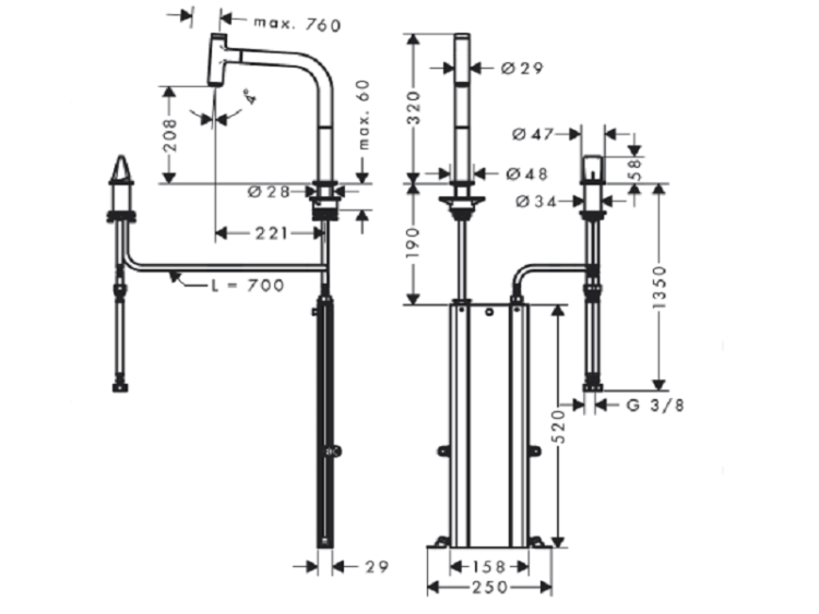 Смеситель для кухни, Hansgrohe, Metris Select M71, sBox, тип открывания воды-однорычажный, тип регулирования воды-керамический картридж, монтаж-на раковину/столешницу, отверстия для монтажа-2, высота, мм-320, вынос излива, мм-221, тип излива-выдвижной, поворотный 110° или 150°, 1 режим струи, корпус для шланга, кнопка Select для комфортного включения/выключения воды, магнитная система крепления душа MagFit, тип подводки-гибкая, стандарт подвода воды-3/8", цвет-сталь Смеситель для кухни, Hansgrohe, Metris Select M71, sBox, цвет-сталь
