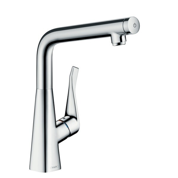Смеситель для кухни, Hansgrohe, Metris Select M71, однорычажный, кнопка Select для комфортного включения/выключения воды, тип регулирования воды-керамический картридж, монтаж-на раковину/столешницу, отверстия для монтажа-1, высота, мм-365, вынос излива, мм-223, тип излива-поворотный, 1 режим струи-ламинарная струя, тип подводки-гибкая, стандарт подвода воды-3/8", цвет-сталь Смеситель для кухни, Hansgrohe, Metris Select M71, цвет-сталь