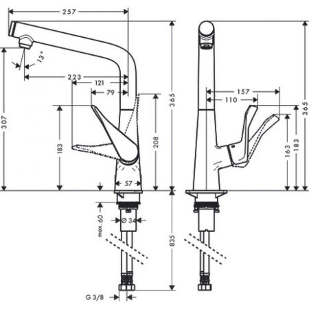 Стандарт подводки | 3/8" |