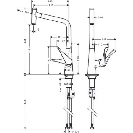 Смеситель для кухни, Hansgrohe, Metris Select M71, Eco, однорычажный, кнопка Select для комфортного включения/выключения воды, тип регулирования воды-керамический картридж, монтаж-на раковину/столешницу, отверстия для монтажа-1, высота, мм-445, вынос излива, мм-235, тип излива-выдвижной, поворотный, 1 режим струи-ламинарная струя, магнитная система крепления душа MagFit, тип подводки-гибкая, стандарт подвода воды-3/8", цвет-хром Смеситель для кухни, Hansgrohe, Metris Select M71, Eco, цвет-хром
