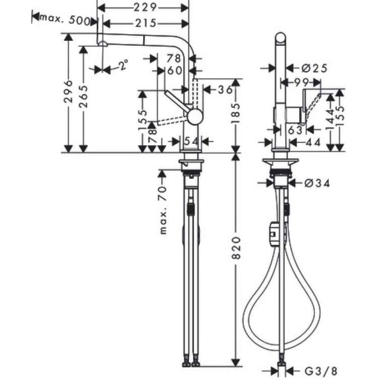 Смеситель для кухни, Hansgrohe, Talis M54, тип открывания воды-однорычажный, тип регулирования воды-керамический картридж, монтаж-на раковину/столешницу, отверстия для монтажа-1, высота, мм-296, вынос излива, мм-215, тип излива-выдвижной с вытяжным изливом, поворотный 60°, 110°, 150° или 360°, душевой шланг Quick-Connect, 1 режим струи-ламинарная струя, тип подводки-гибкая, стандарт подвода воды-3/8", цвет-черный матовый Смеситель для кухни, Hansgrohe, Talis M54, цвет-черный матовый