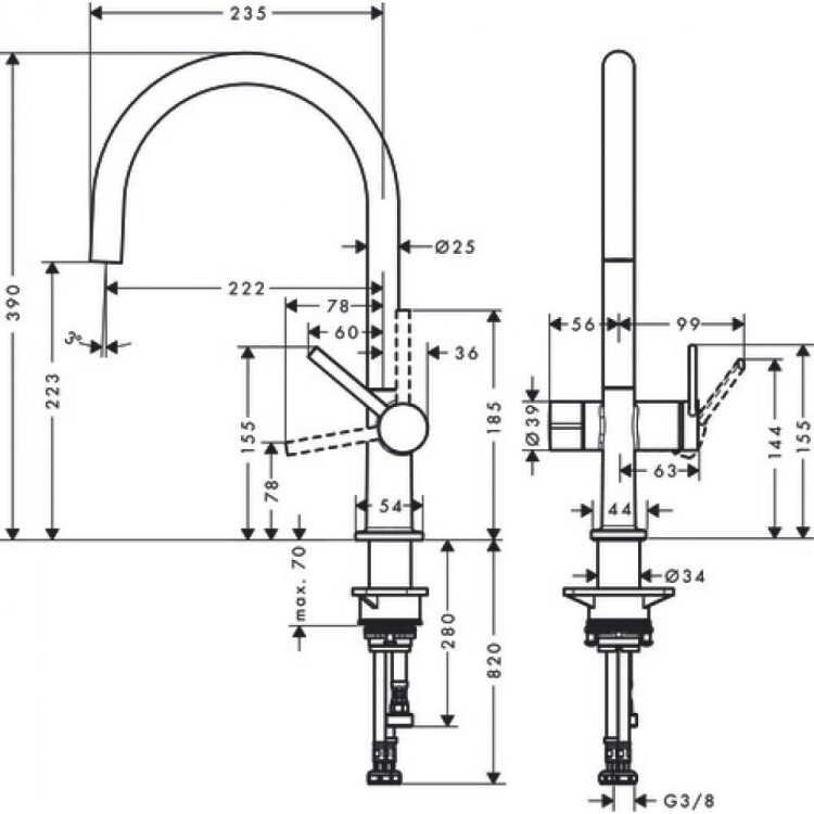Смеситель для кухни, Hansgrohe, Talis M54, с запорным вентилем, тип открывания воды-однорычажный, тип регулирования воды-керамический картридж, монтаж-на раковину/столешницу, отверстия для монтажа-1, высота, мм-390, вынос излива, мм-222, тип излива-поворотный, тип подводки-гибкая, стандарт подвода воды-3/8", цвет-черный матовый Смеситель для кухни, Hansgrohe, Talis M54, с запорным вентилем, цвет-черный матовый