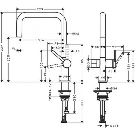 Смеситель для кухни, Hansgrohe, Talis M54, с запорным вентилем, тип открывания воды-однорычажный, тип регулирования воды-керамический картридж, монтаж-на раковину/столешницу, отверстия для монтажа-1, высота, мм-339, вынос излива, мм-216, тип излива-поворотный, тип подводки-гибкая, стандарт подвода воды-3/8", цвет-хром Смеситель для кухни, Hansgrohe, Talis M54, цвет-хром