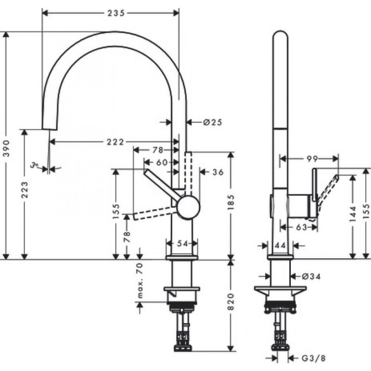 Смеситель для кухни, Hansgrohe, Talis M54, тип открывания воды-однорычажный, тип регулирования воды-керамический картридж, монтаж-на раковину/столешницу, отверстия для монтажа-1, высота, мм-390, вынос излива, мм-222, тип излива-поворотный 60°, 110°, 150° или 360°, тип подводки-гибкая, стандарт подвода воды-3/8", цвет-сталь Смеситель для кухни, Hansgrohe, Talis M54, цвет-сталь
