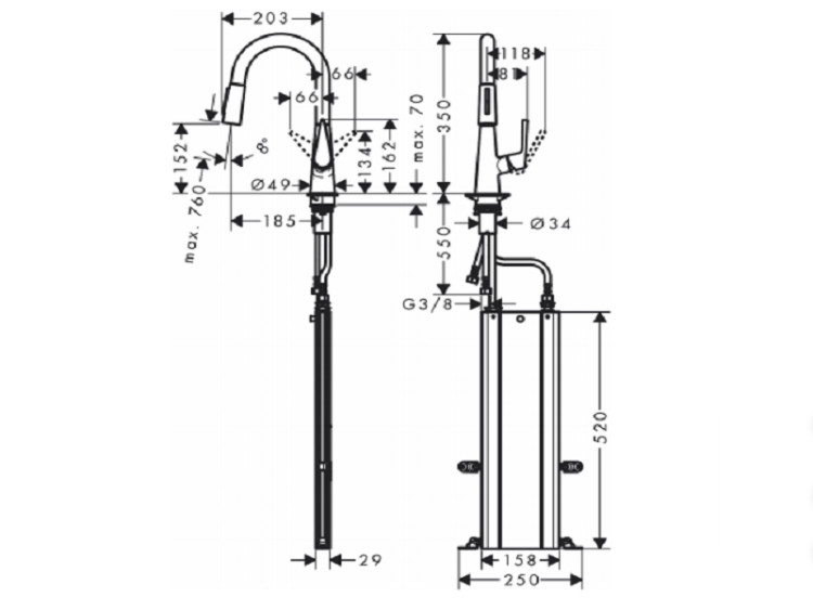Тип излива | выдвижной, поворотный |