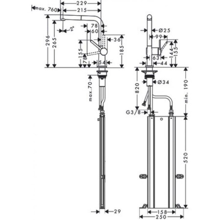 Смеситель для кухни, Hansgrohe, Talis M54, sBox, тип открывания воды-однорычажный, тип регулирования воды-керамический картридж, монтаж-на раковину/столешницу, отверстия для монтажа-1, высота, мм-296, вынос излива, мм-215, тип излива-выдвижной, поворотный 60°, 110°, 150° или 360°, корпус для шланга, 1 режим струи-ламинарная струя, тип подводки-гибкая, стандарт подвода воды-3/8", цвет-черный матовый Смеситель для кухни, Hansgrohe, Talis M54, sBox. цвет-черный матовый