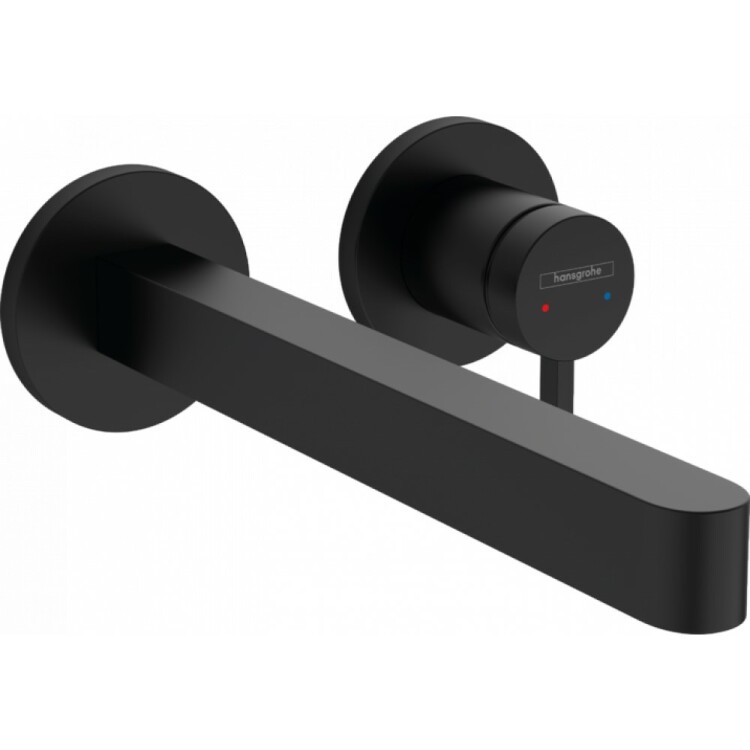 Смеситель для раковины, Hansgrohe, Finoris, тип открывания воды-однорычажный, рукоятку можно расположить справа или слева, тип регулирования воды-керамический картридж, монтаж-настенный встраиваемый, отверстия для монтажа-2, высота, мм-103, вынос излива, мм-228, тип излива-неподвижный, донный клапан-отсутствует, тип подводки-жесткая, стандарт подвода воды-1/2", внутренняя часть-необходимо заказать, цвет-черный матовый Смеситель для раковины, Hansgrohe, Finoris, цвет-черный матовый