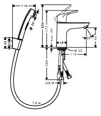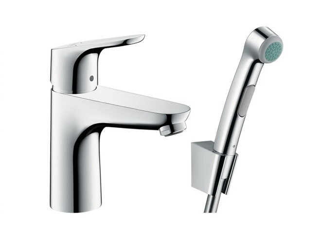 Смеситель для раковины, Hansgrohe, Focus, тип открывания воды-однорычажный, тип регулирования воды-керамический узел смешивания, тип установки-на раковину, отверстия для монтажа-1, высота, мм-177, вынос излива, мм-119, донный клапан-есть, с гигиеническим душем, цвет-хром Смеситель для раковины, Hansgrohe, Focus, цвет-хром