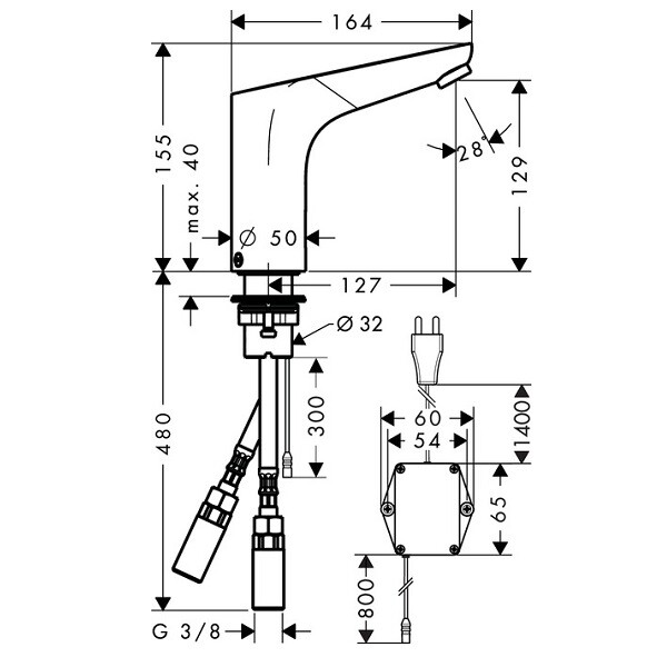 Смеситель для раковины, Hansgrohe, Focus, тип открывания воды-электронный, отверстия для монтажа-1, тип питания-от сети, высота, мм-155, вынос излива, мм-127, донный клапан-есть, цвет-хром, без регулировки температуры, расход воды 5 л/мин Смеситель для раковины, Hansgrohe, Focus, цвет-хром