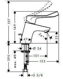 Смеситель для раковины, Hansgrohe, Focus, тип открывания воды-однорычажный, тип регулирования воды-керамический узел смешивания, отверстия для монтажа-1, высота, мм-197, вынос излива, мм-155, донный клапан-есть, тип подводки-гибкая, стандарт подвода воды-3/8", цвет-хром Смеситель для раковины, Hansgrohe, Focus, цвет-хром