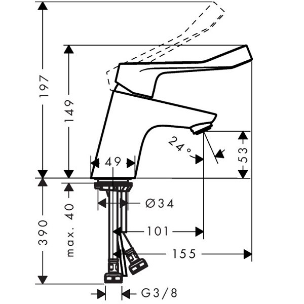 Смеситель для раковины, Hansgrohe, Focus, тип открывания воды-однорычажный, тип установки-встраиваемый, отверстия для монтажа-1, высота, мм-290, материал ручки-ручка металл, цвет ручки-хром, цвет-хром, без сливного гарнитура, с длинной ручкой Смеситель для раковины, Hansgrohe, Focus, цвет-хром