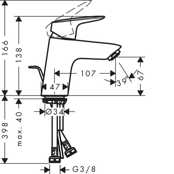 Смеситель для раковины, Hansgrohe, Logis, тип открывания воды-однорычажный, тип регулирования воды-керамический узел смешивания, отверстия для монтажа-1, высота, мм-138, вынос излива, мм-107, донный клапан-есть, стандарт подвода воды-3/8", цвет-хром, регулируемое ограничение температуры Смеситель для раковины, Hansgrohe, Logis, цвет-хром