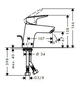 Смеситель для раковины, Hansgrohe, Logis, тип открывания воды-однорычажный, тип регулирования воды-керамический узел смешивания, тип установки-на раковину, отверстия для монтажа-1, высота, мм-138, вынос излива, мм-107, цвет-хром Смеситель для раковины, Hansgrohe, Logis, цвет-хром