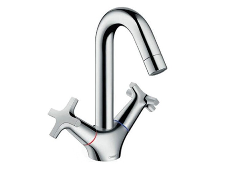 Смеситель для раковины, Hansgrohe, Logis, тип открывания воды-двухвентильный, тип регулирования воды-керамический картридж, тип установки-на раковину, отверстия для монтажа-1, высота, мм-220, вынос излива, мм-156, тип излива-поворотный, донный клапан-есть, тип подводки-гибкая, стандарт подвода воды-3/8", цвет-хром Смеситель для раковины, Hansgrohe, Logis, цвет-хром