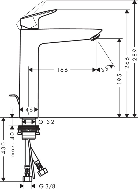Смеситель для раковины, Hansgrohe, Logis, тип открывания воды-однорычажный, тип регулирования воды-керамический узел смешивания, отверстия для монтажа-1, высота, мм-266, вынос излива, мм-166, донный клапан-есть, цвет хром Смеситель для раковины, Hansgrohe, Logis, цвет хром
