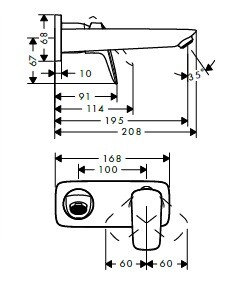 Смеситель для раковины, Hansgrohe, Logis, тип открывания воды-однорычажный, тип регулирования воды-керамический узел смешивания, тип установки-настенный, вынос излива, мм-195, внутренняя часть-необходимо заказать, цвет хром Смеситель для раковины, Hansgrohe, Logis, цвет хром