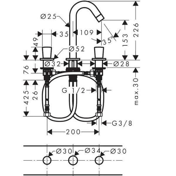 Смеситель для раковины, Hansgrohe, Logis, тип открывания воды-двухвентильный, тип регулирования воды-керамический картридж, отверстия для монтажа-3, высота, мм-226, вынос излива, мм-109, донный клапан-есть, цвет-хром Смеситель для раковины, Hansgrohe, Logis, цвет-хром