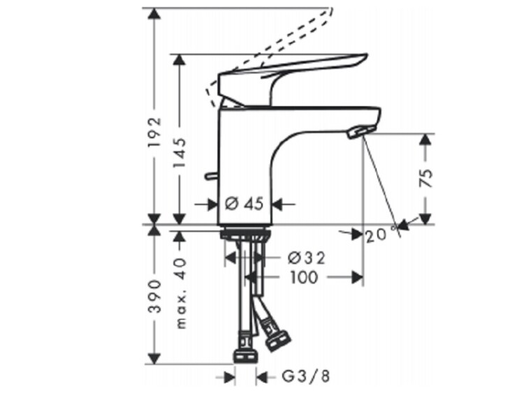 Смеситель для раковины, Hansgrohe, Logis E, тип открывания воды-однорычажный, тип регулирования воды-керамический узел смешивания, отверстия для монтажа-1, высота, мм-145, вынос излива, мм-100, донный клапан-есть, стандарт подвода воды-3/8", цвет-хром, регулируемое ограничение температуры, материал сливного набора: синтетический Смеситель для раковины, Hansgrohe, Logis E, цвет-хром