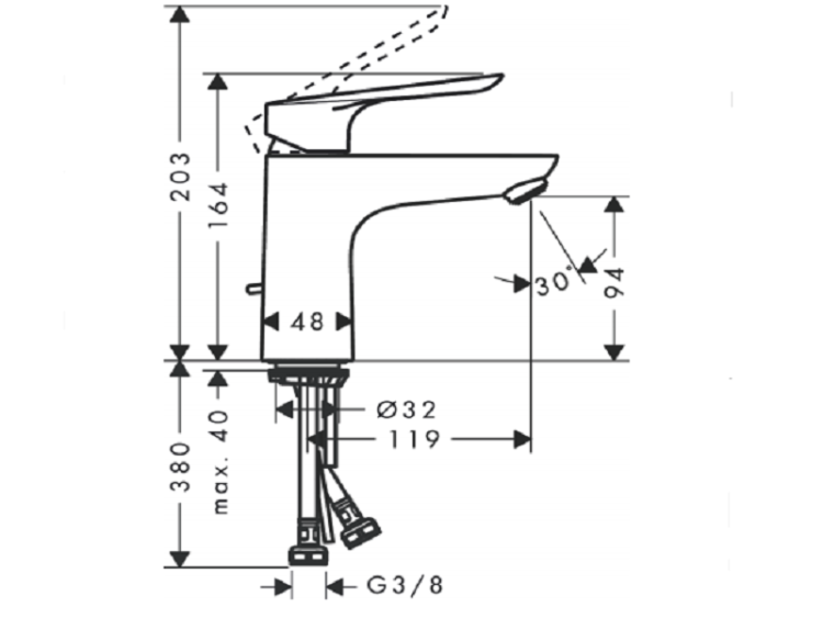 Смеситель для раковины, Hansgrohe, Logis E, тип открывания воды-однорычажный, тип регулирования воды-керамический узел смешивания, отверстия для монтажа-1, высота, мм-164, вынос излива, мм-119, донный клапан-есть, цвет-хром Смеситель для раковины, Hansgrohe, Logis E, цвет-хром