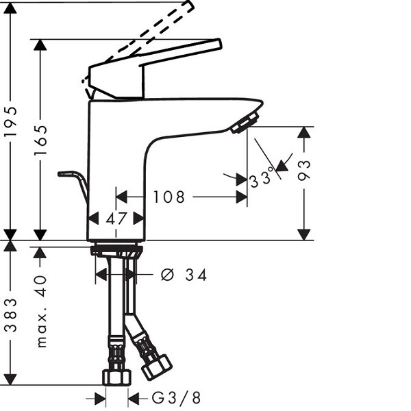 Смеситель для раковины, Hansgrohe, Logis Loop, тип открывания воды-однорычажный, отверстия для монтажа-1, высота, мм-165, вынос излива, мм-108, донный клапан-есть, цвет-хром, подходит для проточных водонагревателей Смеситель для раковины, Hansgrohe, Logis Loop, цвет-хром