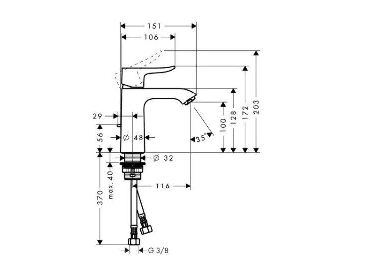 Смеситель для раковины, Hansgrohe, Metris, тип открывания воды-однорычажный, тип регулирования воды-керамический узел смешивания, отверстия для монтажа-1, высота, мм-203, вынос излива, мм-116, донный клапан-есть, тип подводки-гибкая, стандарт подвода воды-3/8", цвет-хром, подходит для проточных водонагревателей Смеситель для раковины, Hansgrohe, Metris, цвет-хром