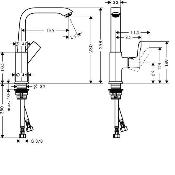 Смеситель для раковины, Hansgrohe, Metris, тип открывания воды-однорычажный, тип регулирования воды-керамический узел смешивания, отверстия для монтажа-1, высота, мм-258, вынос излива, мм-155, цвет-хром, cо сливным клапаном Push-Open Смеситель для раковины, Hansgrohe, Metris, цвет-хром