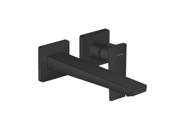 Смеситель для раковины, Hansgrohe, Metropol, тип открывания воды-однорычажный, тип регулирования воды-керамический картридж, тип установки-настенный встраиваемый, отверстия для монтажа-2, вынос излива, мм-225, стандарт подвода воды-1/2", внутренняя часть-необходимо заказать, цвет-черный матовый, незапираемый клапан фильтра Смеситель для раковины, Hansgrohe, Metropol, цвет-черный матовый
