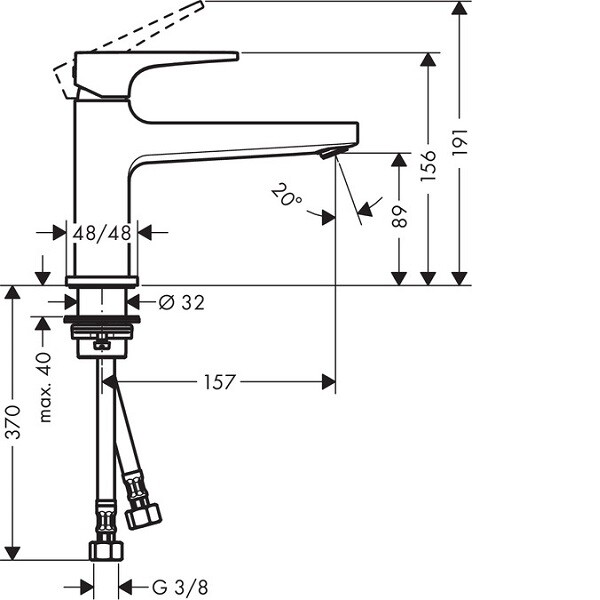 Смеситель для раковины, Hansgrohe, Metropol, тип открывания воды-однорычажный, отверстия для монтажа-1, высота, мм-156, вынос излива, мм-157, донный клапан-есть, цвет-хром, сливной клапан Push-Open G 1¼ Смеситель для раковины, Hansgrohe, Metropol, цвет-хром