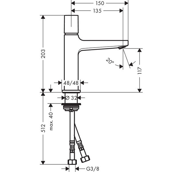 Смеситель для раковины, Hansgrohe, Metropol, отверстия для монтажа-1, высота, мм-203, вынос излива, мм-136, донный клапан-есть, стандарт подвода воды-3/8", цвет-хром, со сливным клапаном Push-Open Смеситель для раковины, Hansgrohe, Metropol, цвет-хром