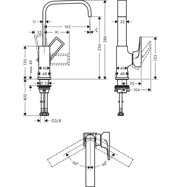 Смеситель для раковины, Hansgrohe, Metropol, тип открывания воды-однорычажный, отверстия для монтажа-1, высота, мм-286, вынос излива, мм-165, донный клапан-есть, цвет-хром, с рукояткой-петлей, со сливным клапаном PushOpen Смеситель для раковины, Hansgrohe, Metropol, цвет-хром