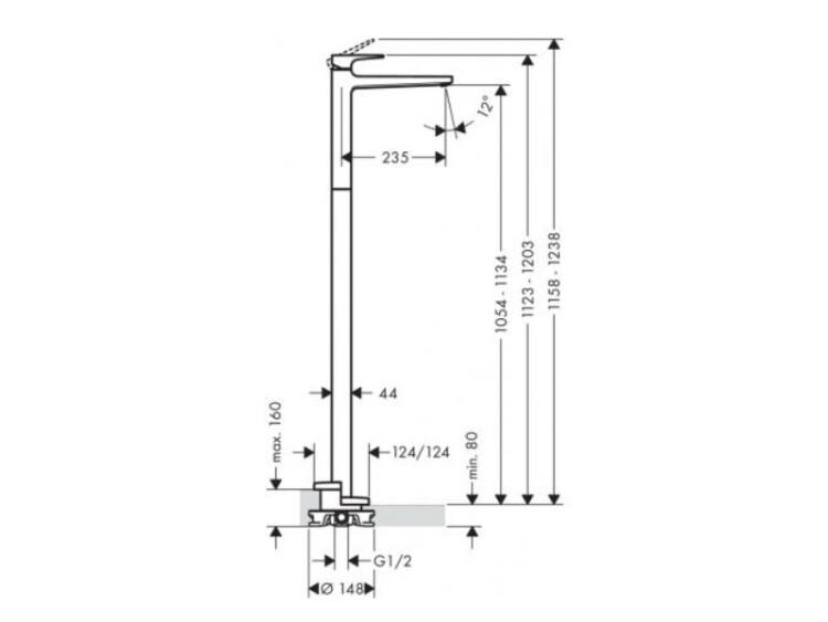 Смеситель для раковины, Hansgrohe, Metropol, тип открывания воды-однорычажный, тип регулирования воды-керамический узел смешивания, тип установки-напольный, отверстия для монтажа-1, высота, мм-1123-1203, вынос излива, мм-235, внутренняя часть-необходимо заказать, цвет-хром Смеситель для раковины, Hansgrohe, Metropol, цвет-хром