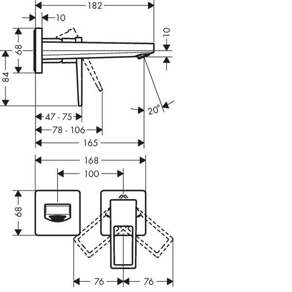 Смеситель для раковины, Hansgrohe, Metropol, тип открывания воды-однорычажный, тип установки-настенный, отверстия для монтажа-2, вынос излива, мм-165, цвет-хром, с рукояткой-петлей Смеситель для раковины, Hansgrohe, Metropol, цвет-хром