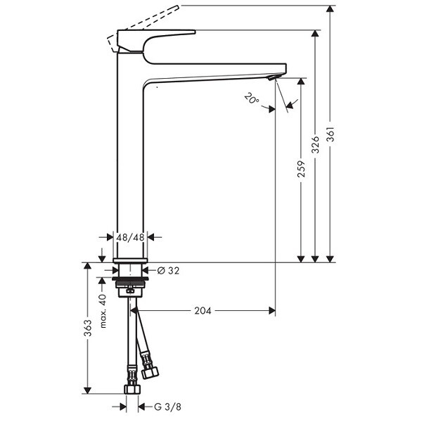 Смеситель для раковины, Hansgrohe, Metropol, тип открывания воды-однорычажный, отверстия для монтажа-1, высота, мм-361, вынос излива, мм-204, цвет-хром, с рукояткой-петлей, со сливным клапаном PushOpen, для раковин в форме таза Смеситель для раковины, Hansgrohe, Metropol, цвет-хром