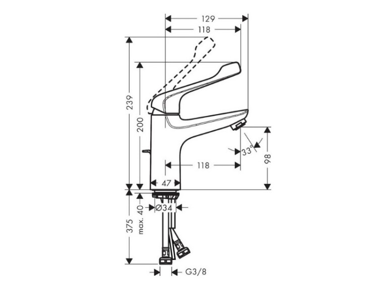 Смеситель для раковины, Hansgrohe, Novus Care, тип открывания воды-однорычажный, тип регулирования воды-керамический узел смешивания, отверстия для монтажа-1, высота, мм-200, вынос излива, мм-118, вид ручки-удлиненная рукоятка, донный клапан-есть, тип подводки-гибкая, стандарт подвода воды-3/8", цвет-хром, ламинарная струя, материал сливного набора-металл Смеситель для раковины, Hansgrohe, Novus Care, цвет-хром