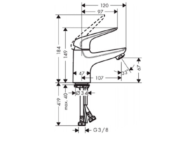 Смеситель для раковины, Hansgrohe, Novus, тип открывания воды-однорычажный, тип регулирования воды-керамический картридж, отверстия для монтажа-1, высота, мм-184, вынос излива, мм-107, донный клапан-есть, тип подводки-гибкая, стандарт подвода воды-3/8", цвет-хром Смеситель для раковины, Hansgrohe, Novus, цвет-хром