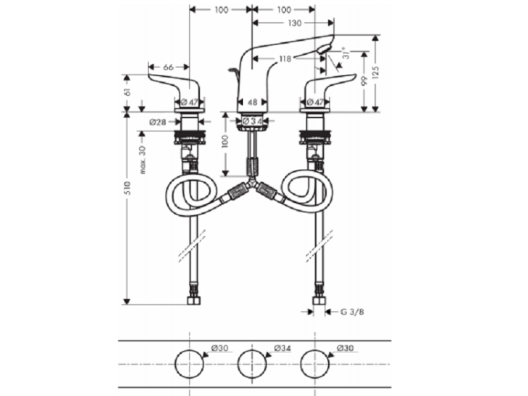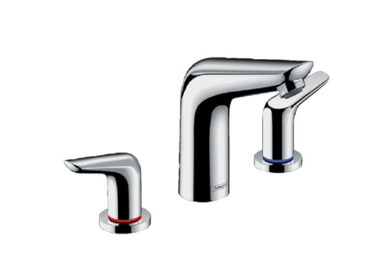 Смеситель для раковины, Hansgrohe, Novus, тип открывания воды-двухвентильный, тип регулирования воды-керамический вентиль, отверстия для монтажа-3, высота, мм-125, вынос излива, мм-118, донный клапан-есть, цвет-хром, материал сливного набора: металл Смеситель для раковины, Hansgrohe, Novus, цвет-хром