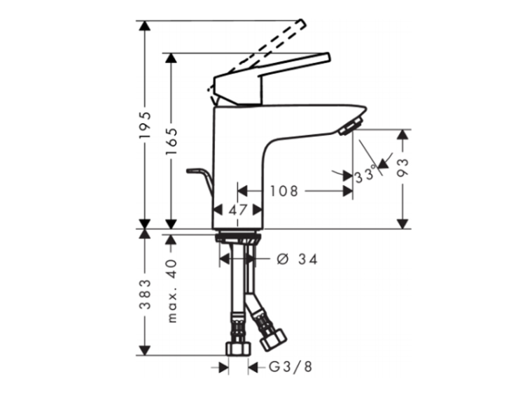 Смеситель для раковины, Hansgrohe, Novus Loop, тип открывания воды-однорычажный, тип регулирования воды-керамический картридж, отверстия для монтажа-1, высота, мм-195, вынос излива, мм-93, донный клапан-есть, тип подводки-гибкая, стандарт подвода воды-3/8", цвет-хром Смеситель для раковины, Hansgrohe, Novus Loop, цвет-хром