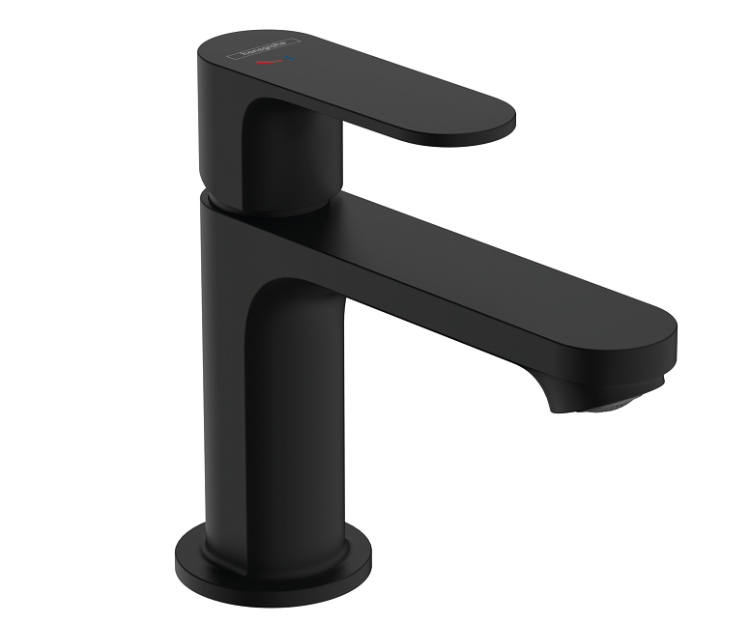 Смеситель для раковины, Hansgrohe, Rebris S, CoolStart, тип открывания воды-однорычажный, тип регулирования воды-керамический картридж, монтаж-на раковину/столешницу, отверстия для монтажа-1, высота, мм-143, вынос излива, мм-121, тип излива-неподвижный, донный клапан-есть, тип подводки-гибкая, стандарт подвода воды-3/8", цвет-черный матовый Смеситель для раковины, Hansgrohe, Rebris S, CoolStart, цвет-черный матовый